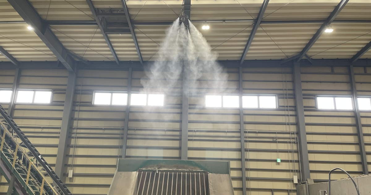 ダンプ(荷卸し時)に舞わないよう、搬入があるたびに発動されるそうで、